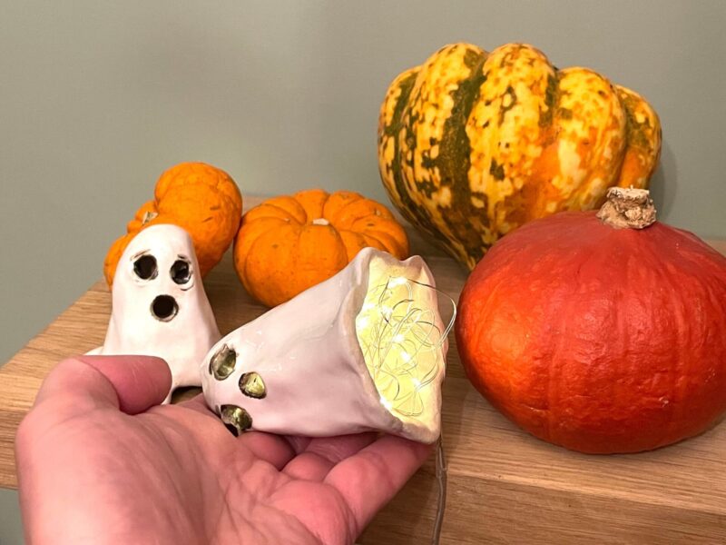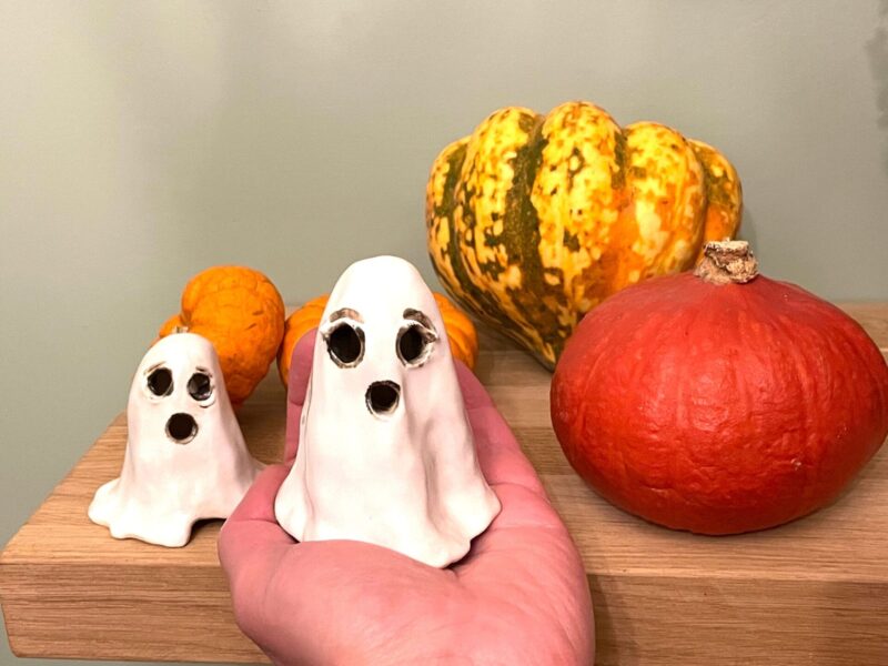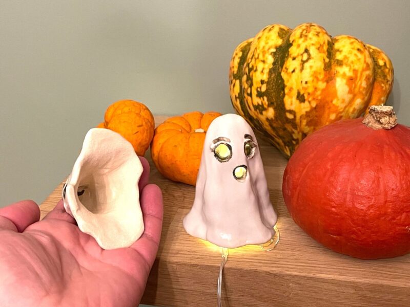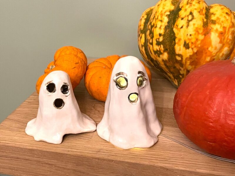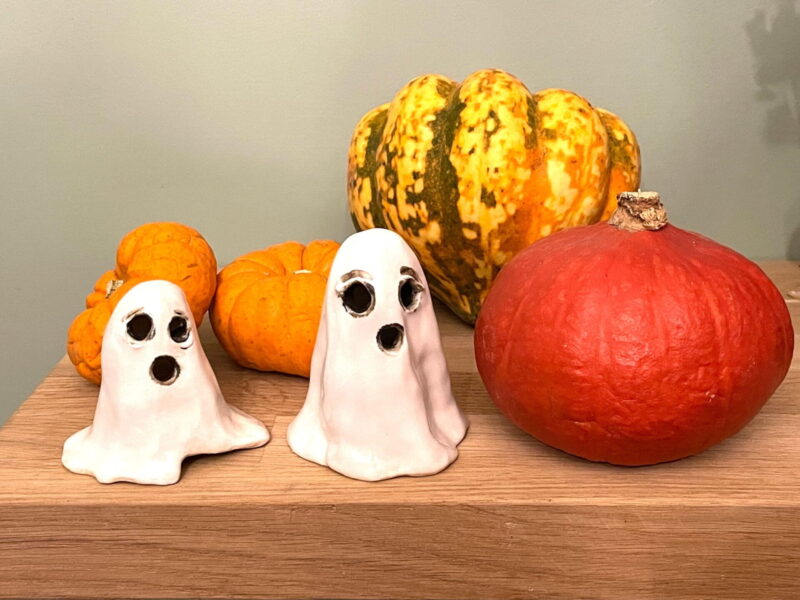 Haunt your home with a touch of whimsical charm! Meet our Halloween Ceramic Mini Ghost Mother with Ghost Son – a delightful duo of spectral sweetness, destined to give your space a ghostly glow. Handcrafted from the finest white clay, these ethereal entities are kiln-fired to perfection and glazed with a smooth, white finish on the outside, leaving the insides open for an LED string light to make them come alive.