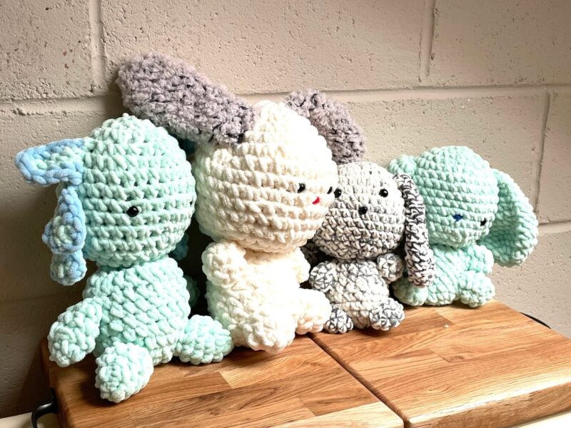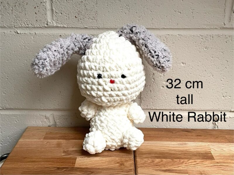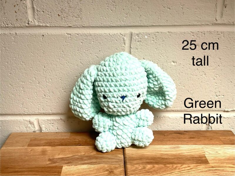 The rabbits are meticulously crafted, combining the softness of chenille yarn with expert crochet techniques. Their light, happy colours bring a sense of joy and warmth to any room. The careful stuffing process ensures each plush is delightfully squeezable, while the addition of safety eyes and nose gives each rabbit its own personality.