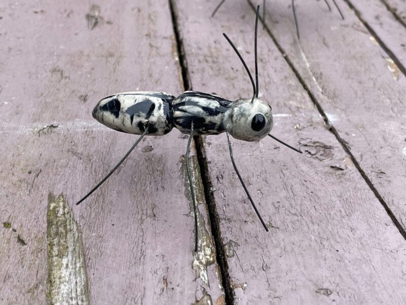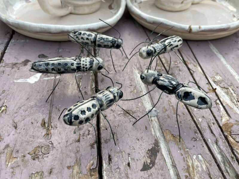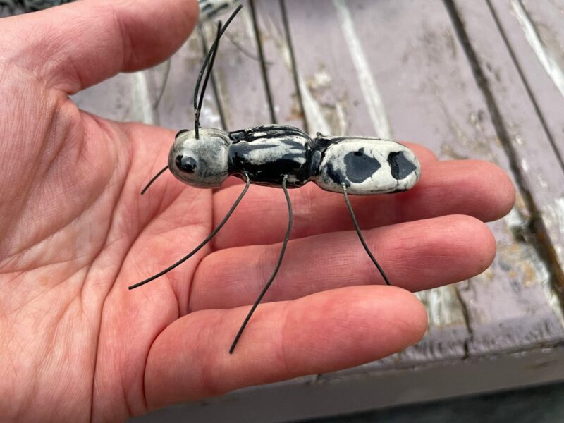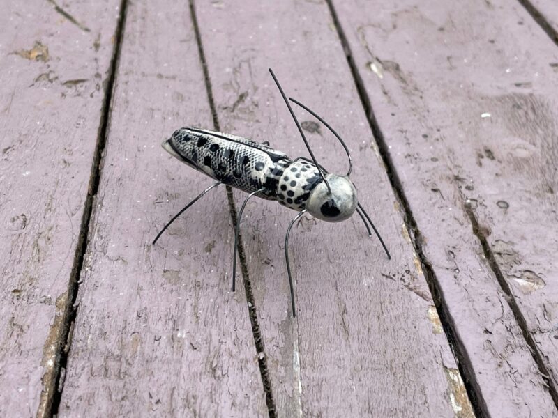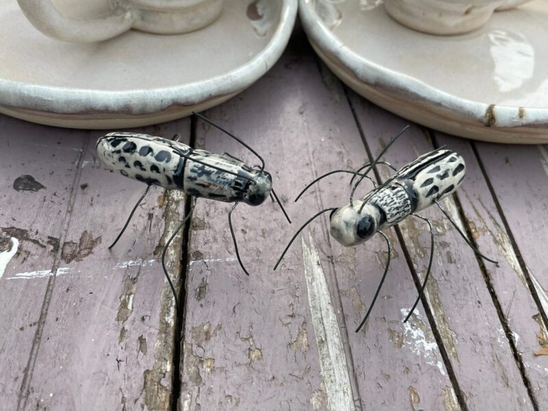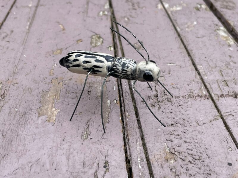 Tags: black and white, black insect, bug with metal legs, ceramic beetle, ceramic bug, Ceramic insect, garden decor, grasshopper, handmade pottery, knick knack, metal antenna, plant friend, white insect
