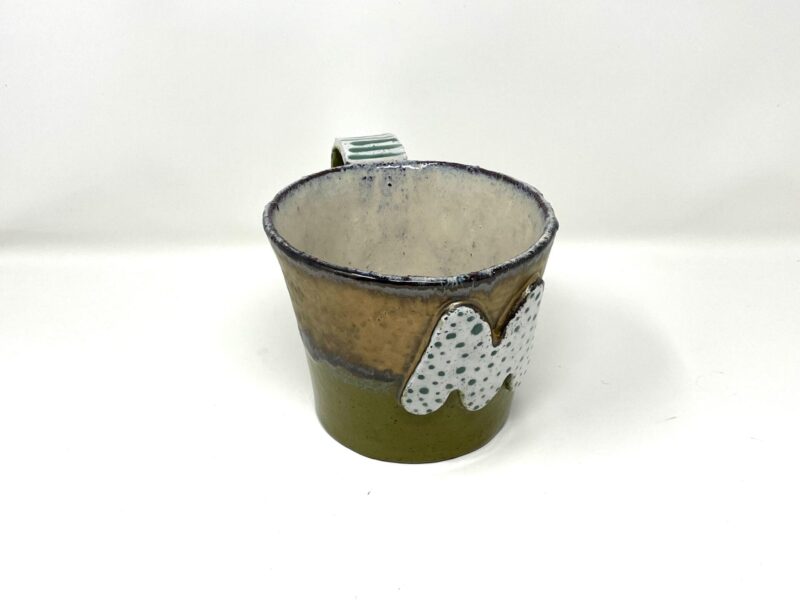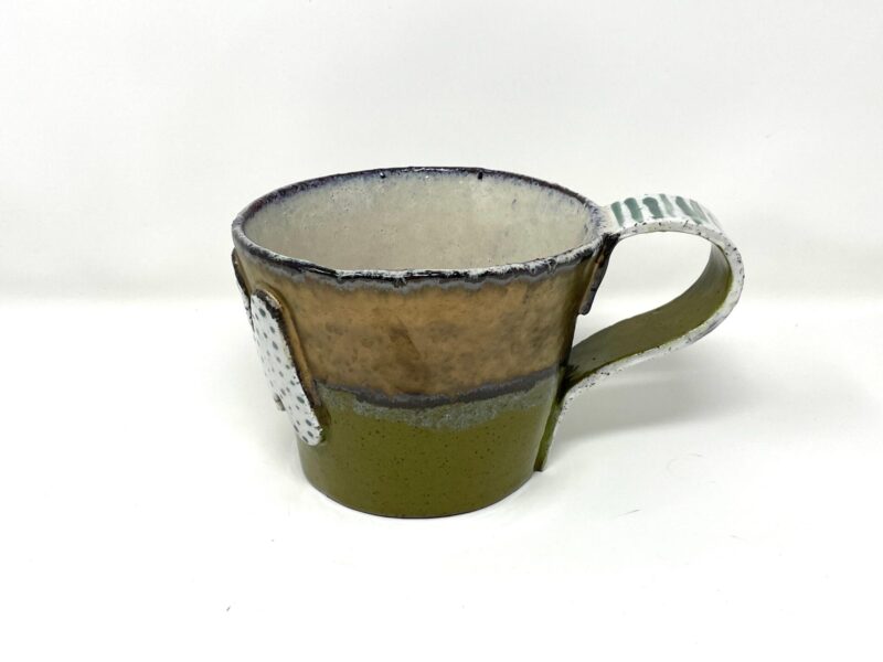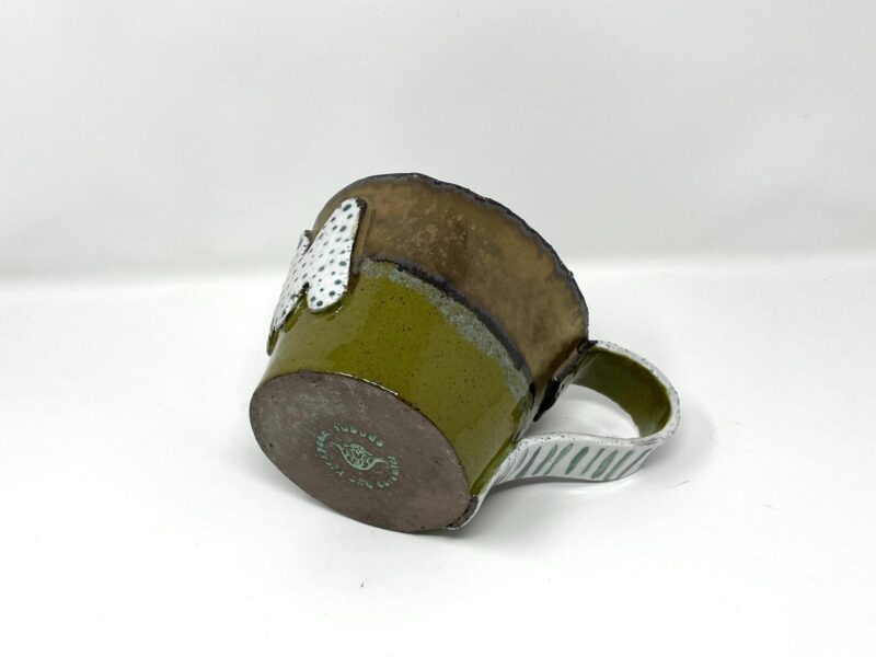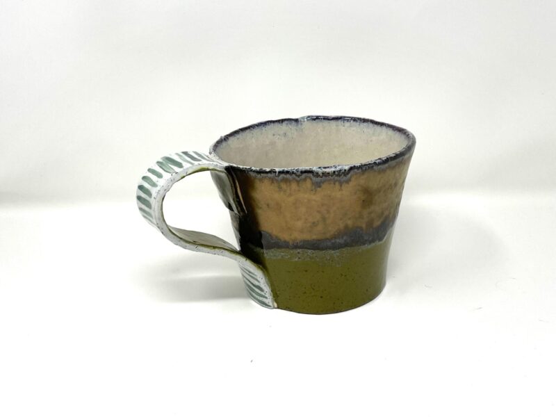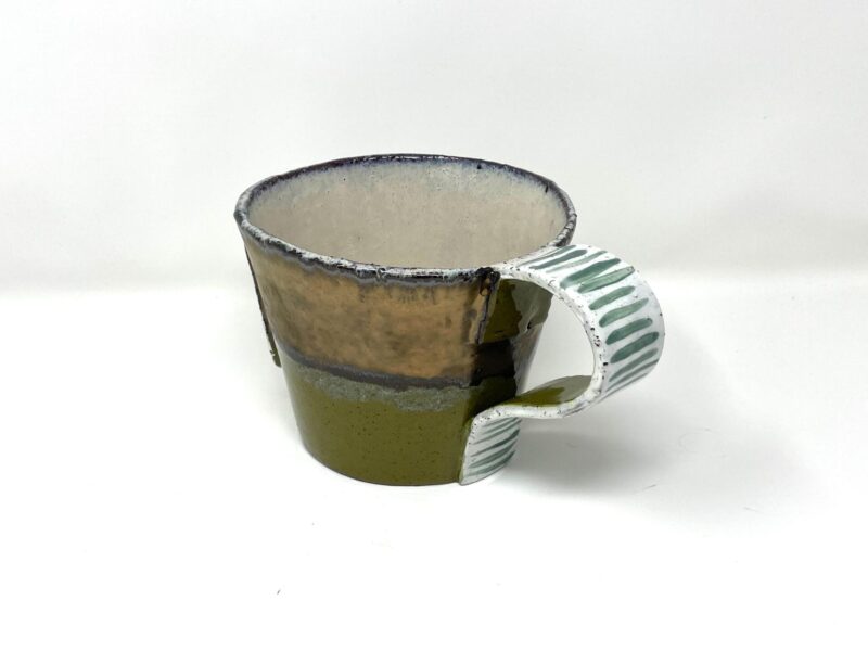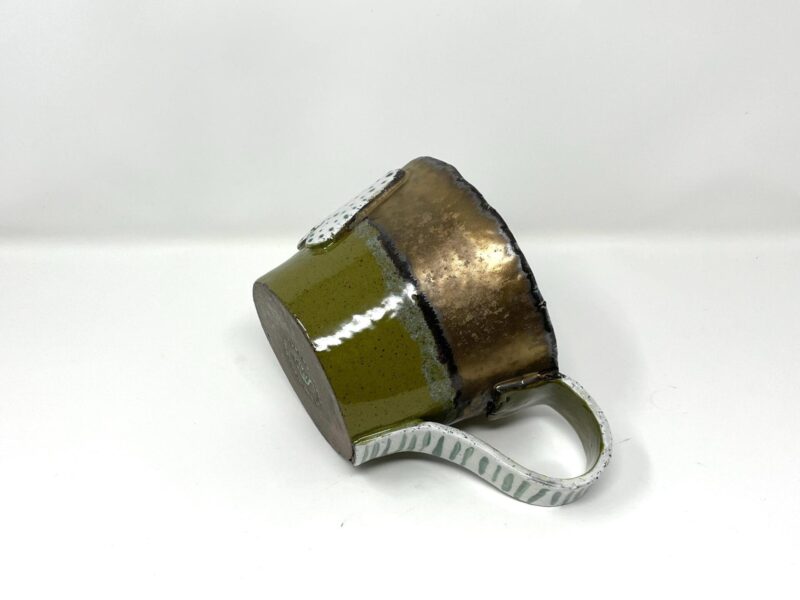 This extraordinary mug is more than just a vessel for your favourite drinks. Its ample size ensures you meet your daily liquid intake with just two fills, making it perfect for busy home office workers. Pottery collectors will appreciate the unique blend of metallic gold, olive green glazes, while coffee enthusiasts can savour their brews in style.