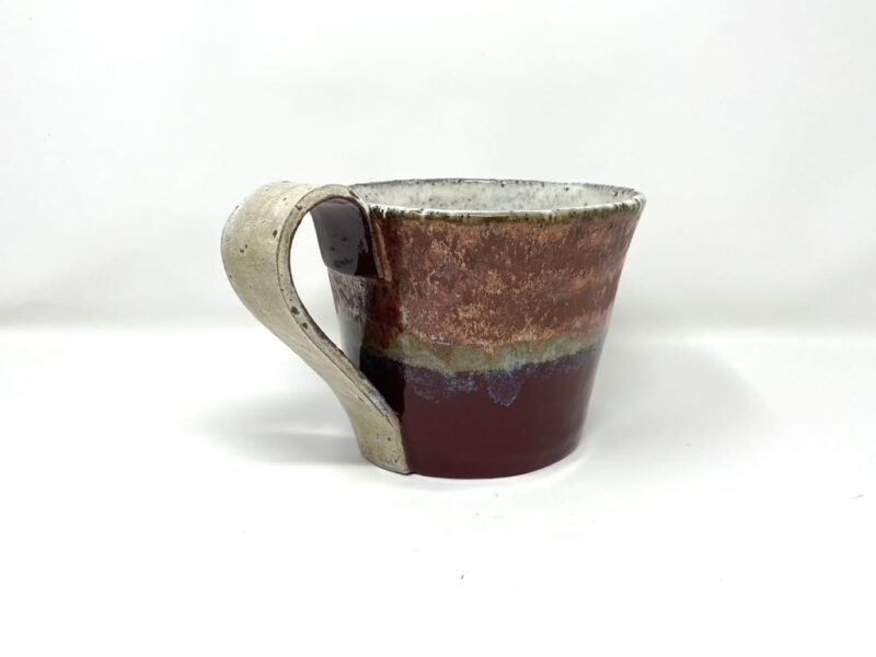 This extraordinary mug is more than just a vessel for your favourite drinks. Its ample size ensures you meet your daily liquid intake with just two fills, making it perfect for busy home office workers. Pottery collectors will appreciate the unique blend of metallic copper, deep red and pinkish off white glazes, while coffee enthusiasts can savour their brews in style.