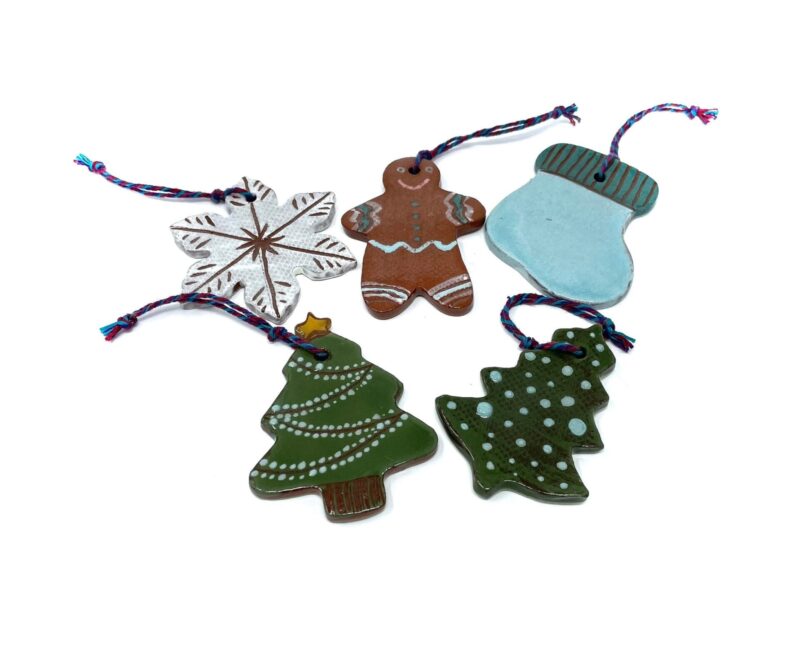 Be the first to review “Handmade Ceramic Christmas pendant ornaments 5 in a set”