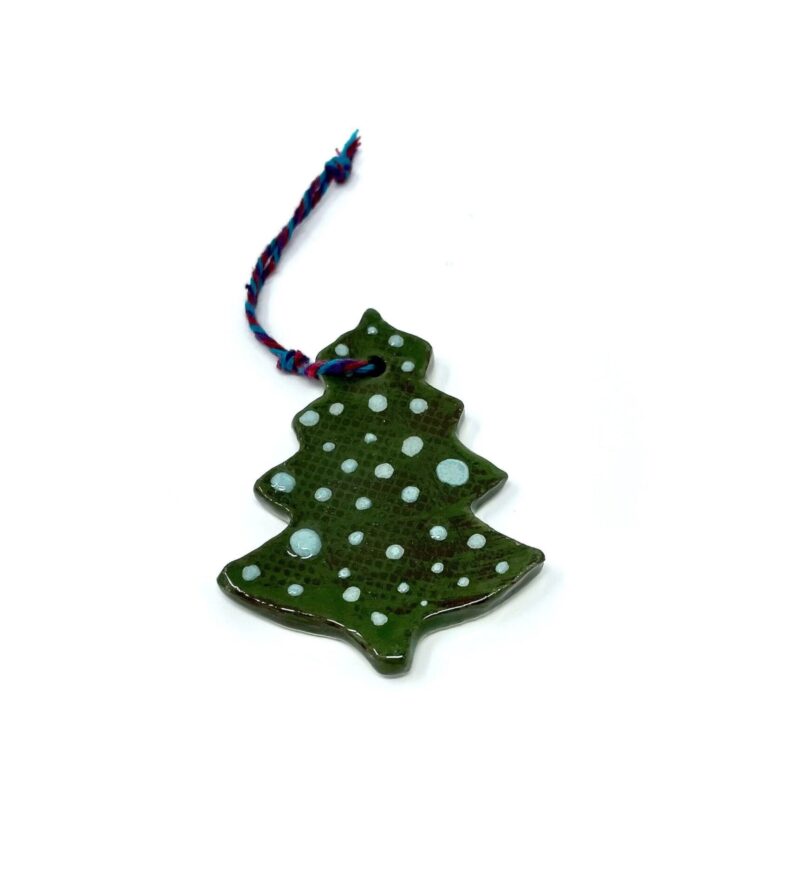 Enhance your Christmas tree with these exquisite Handmade Ceramic Christmas pendant ornaments. Crafted from red terracotta clay, each ornament is a unique work of art. Adorned with coloured underglaze and finished with a transparent coat, they radiate festive cheer. The backside is elegantly matte and painted in one solid colour.