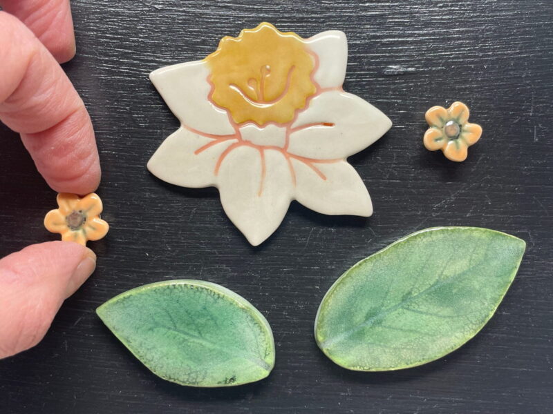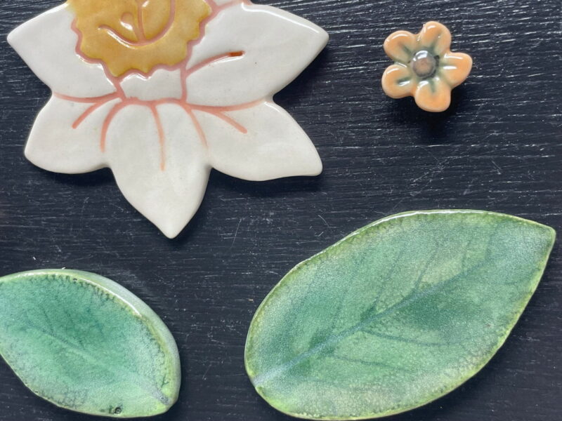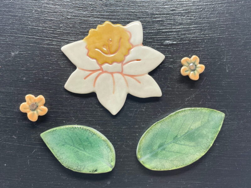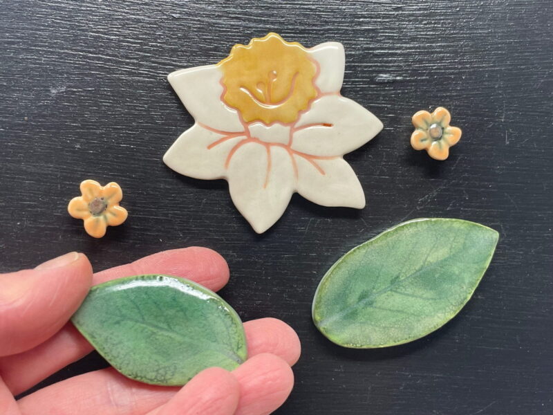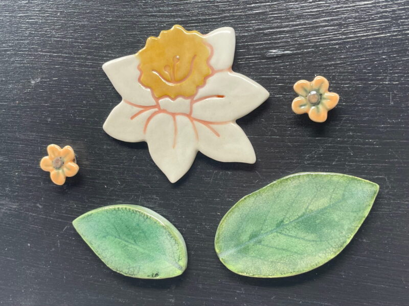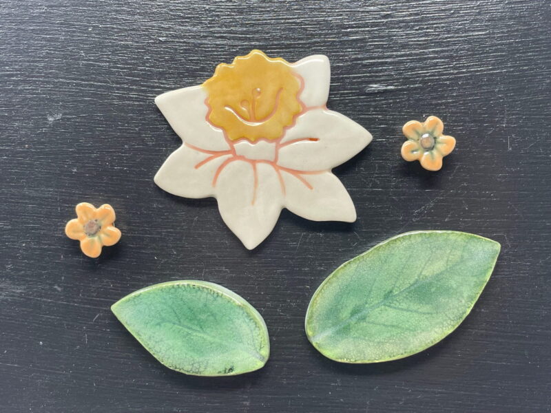 Excite your senses and uplift your mood every time you walk past your fridge with these beautiful ceramic daffodil and green leaf magnets.