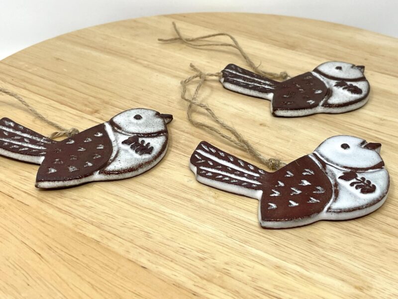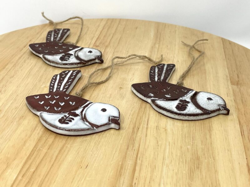 Handmade Ceramic Hanging Bird | Terracotta Clay Ornament | White Glazed Home Decor | 10cm