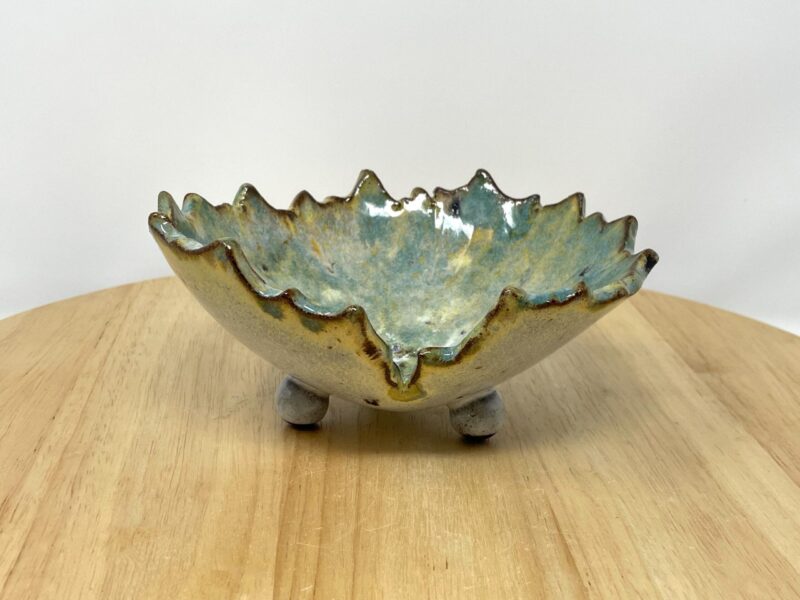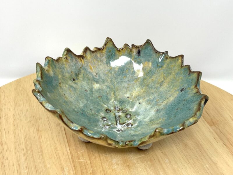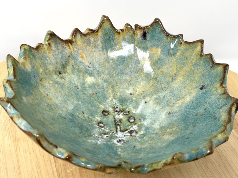 Beautiful glazing – Stunning blue-green glaze with golden undertones creates a dynamic earthy effect that highlights the leaf’s texture