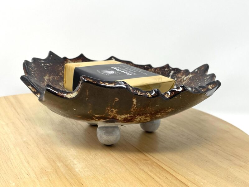 Elevated design – Three hand-formed ball feet keep your soap dry and your surfaces clean