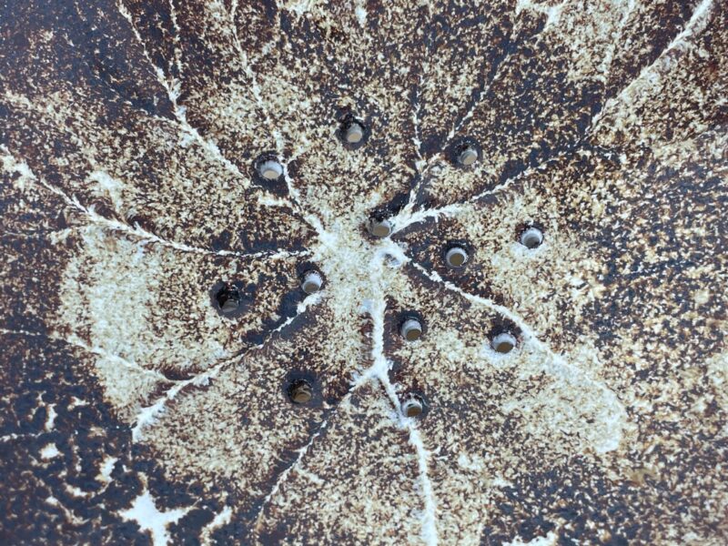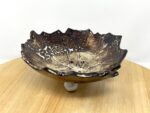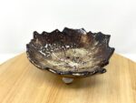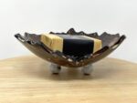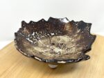 – The piece is shaped into a shallow dish and elevated with three handcrafted ball feet for stability and proper drainage.