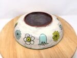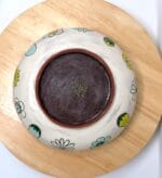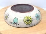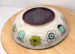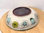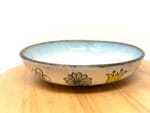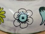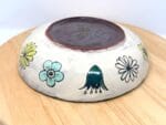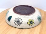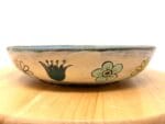 The exterior is a work of art—painted with an ivory slip and decorated using the traditional sgraffito technique, showcasing simple floral motifs in soft greens and blues. A transparent glaze overlays the exterior, protecting the design while highlighting its intricate details.