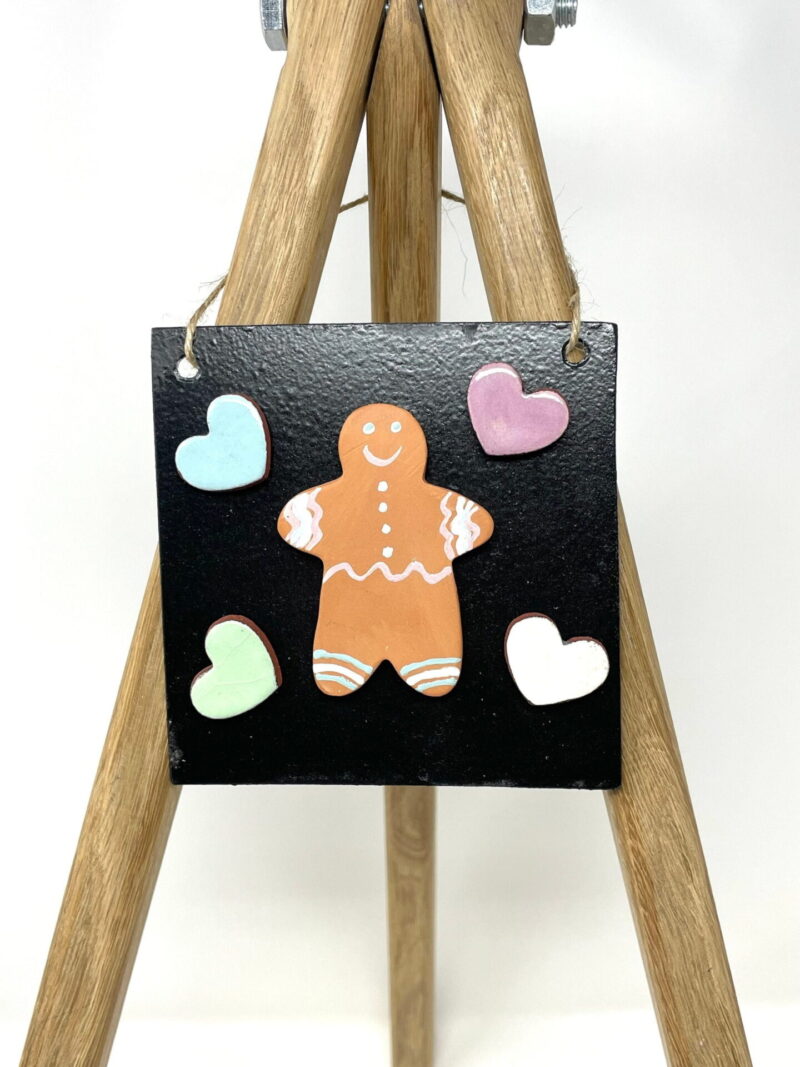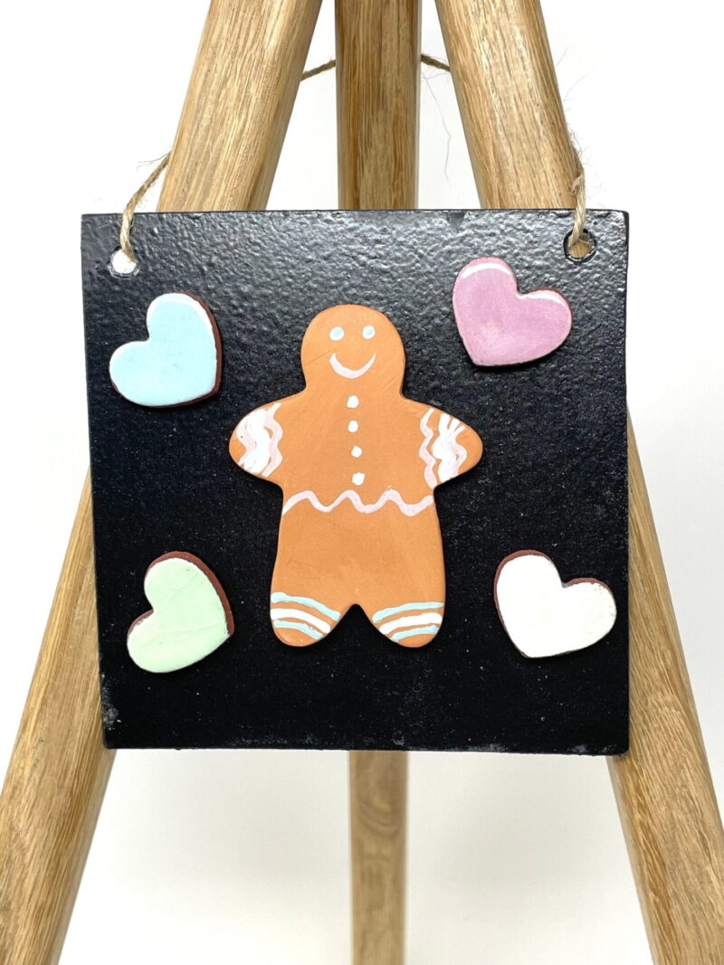 Introducing our Handmade Ceramic Pottery Gingerbread Man Fridge Magnet Set, complete with adorable hearts and a metallic board. This charming set is perfect for adding a touch of festive cheer to your home decor.