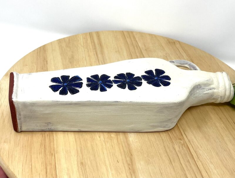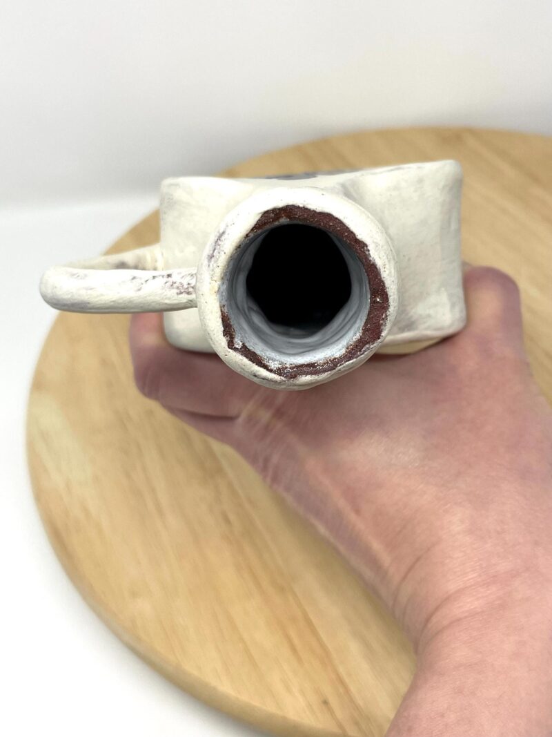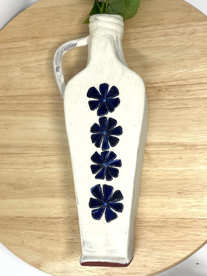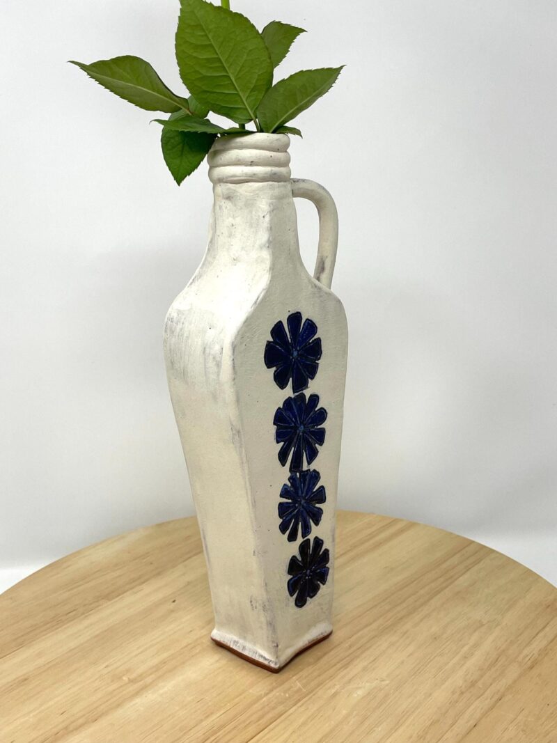 Add a touch of handcrafted elegance to your space – order your rustic ceramic vase with its beautiful white matte exterior and cobalt blue floral accents today!