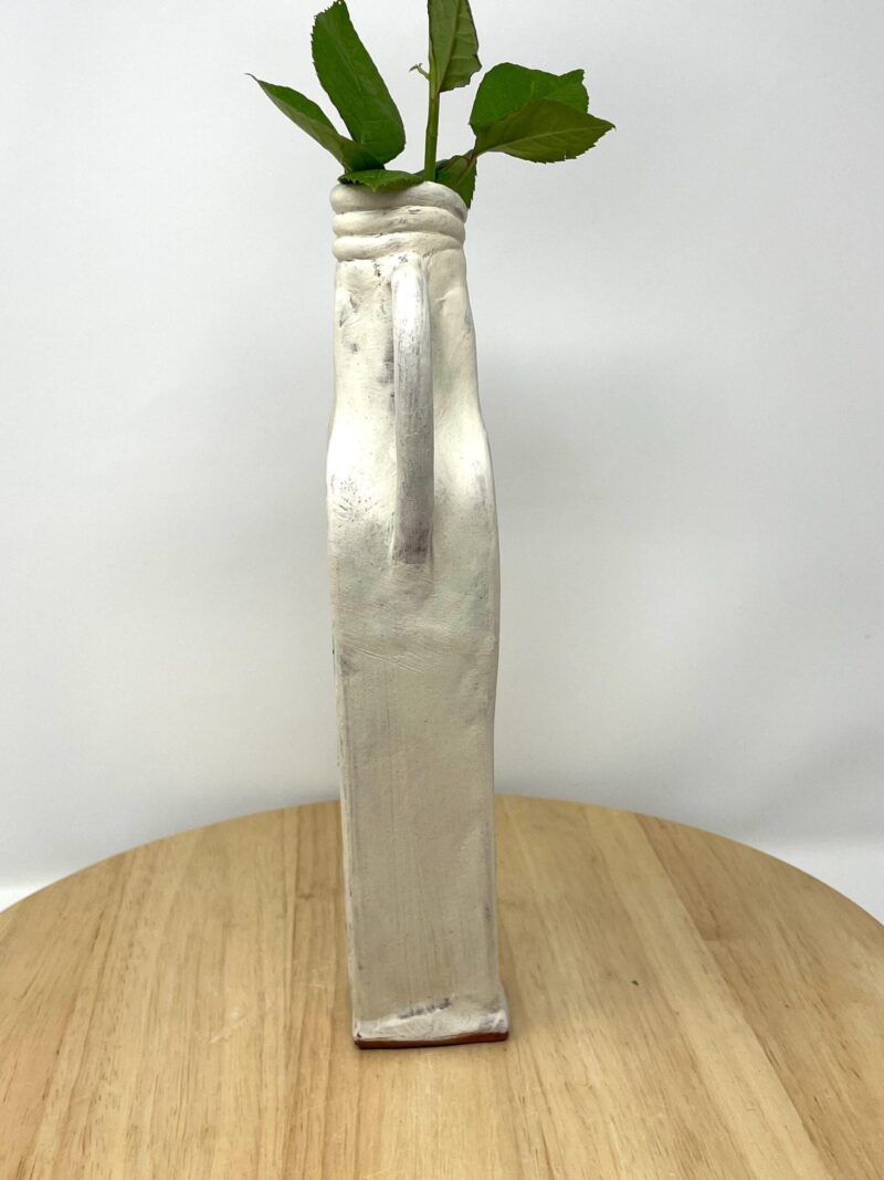 Elevate your home decor with this unique, handcrafted ceramic vase perfect for displaying a single flower or as a standalone decorative piece. This vase is created using the slabbing technique, ensuring a one-of-a-kind rustic charm.