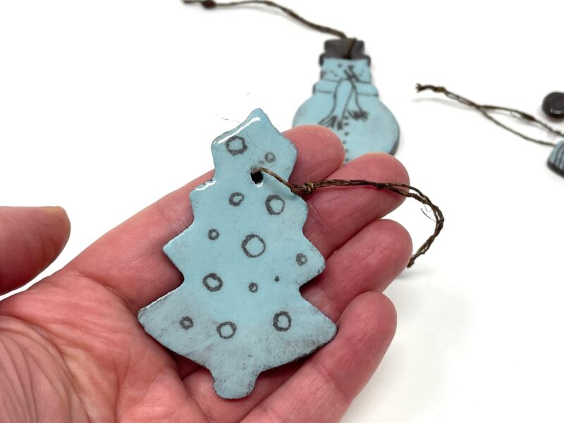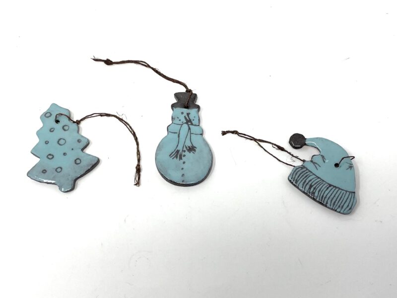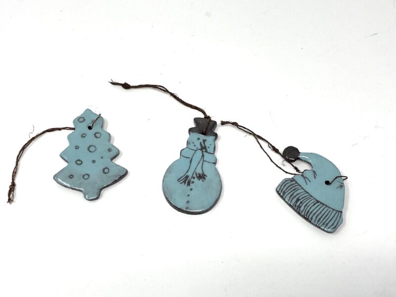 Handmade Light Blue Ceramic Christmas Ornaments – Set of 3