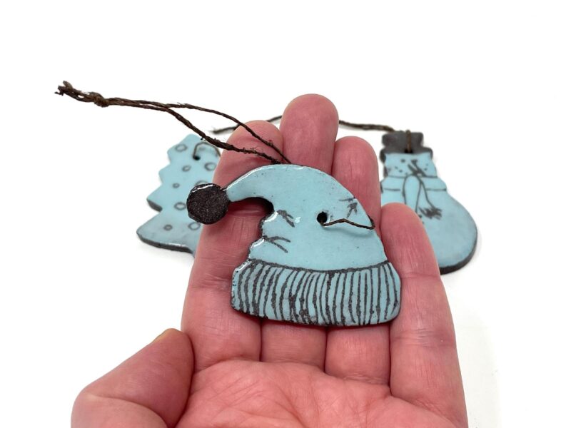 Add a touch of handcrafted magic to your holiday decorations with these light blue ceramic hanging ornaments. Each set tells a story of artisanal skill and festive spirit, making them perfect as gifts or as treasured additions to your own collection.