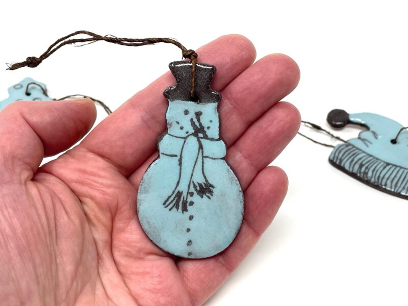 Our skilled artisans begin with high-quality clay, carefully shaping each ornament by hand. A soft light blue slip is then applied to the surface, creating a beautiful canvas that evokes the crisp, cool tones of winter. The transparent glaze enhances the light blue hue, resulting in ornaments that are both visually stunning and tactilely pleasing.