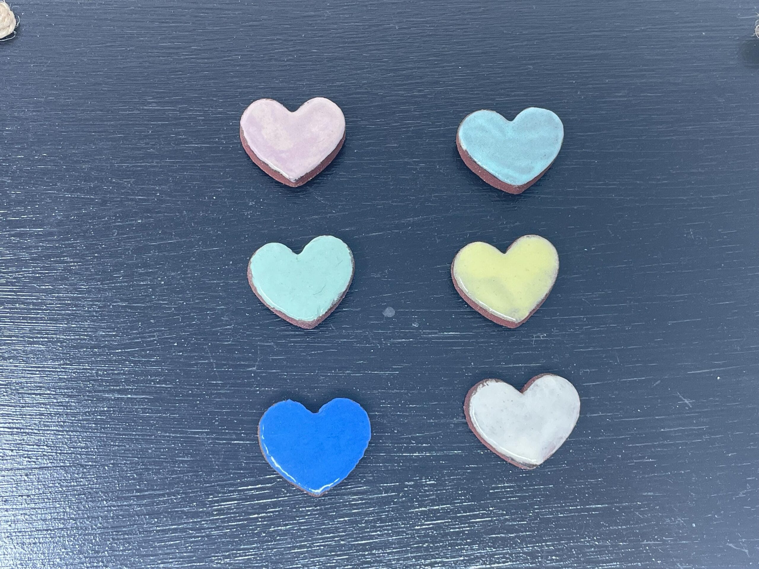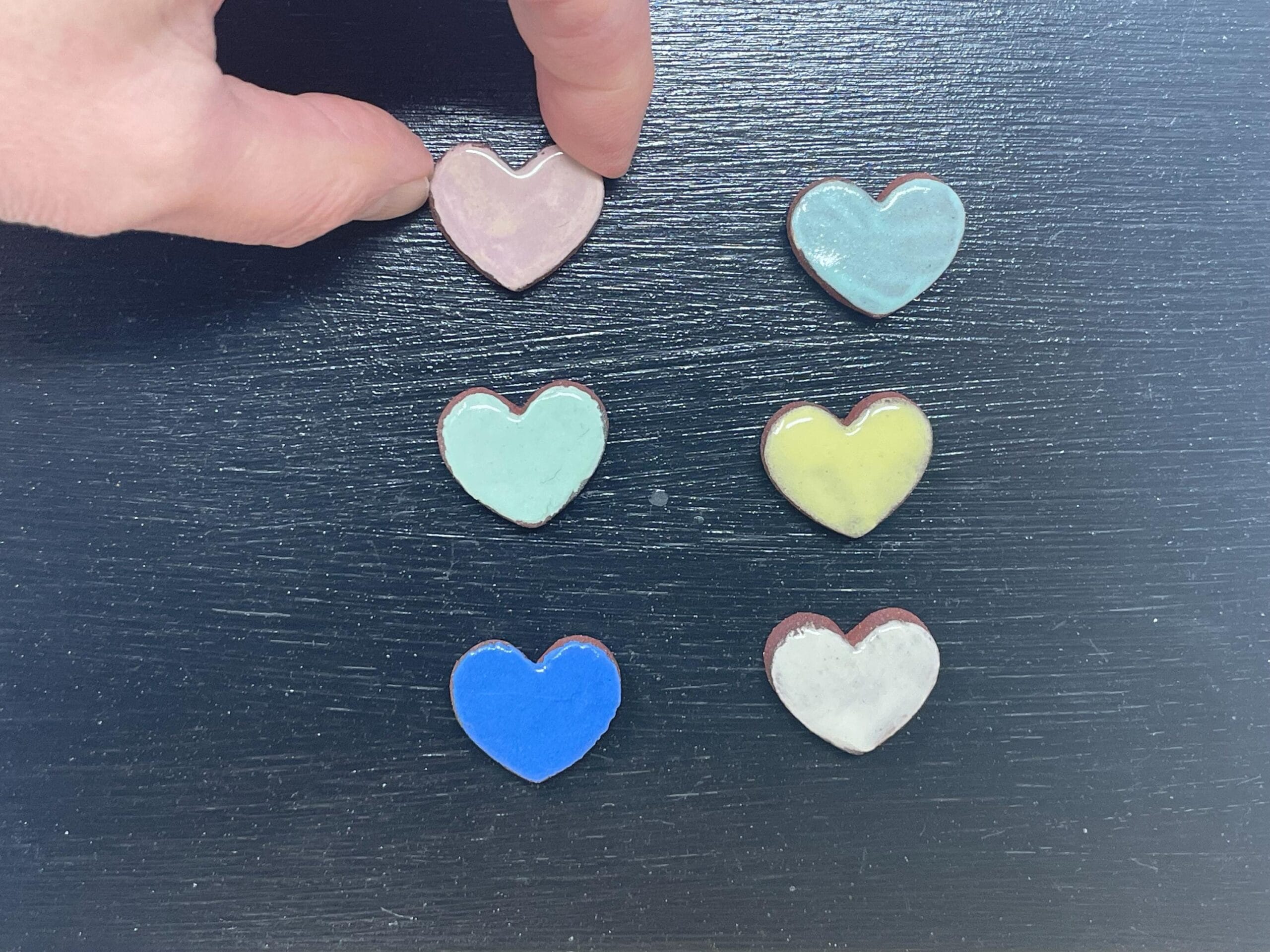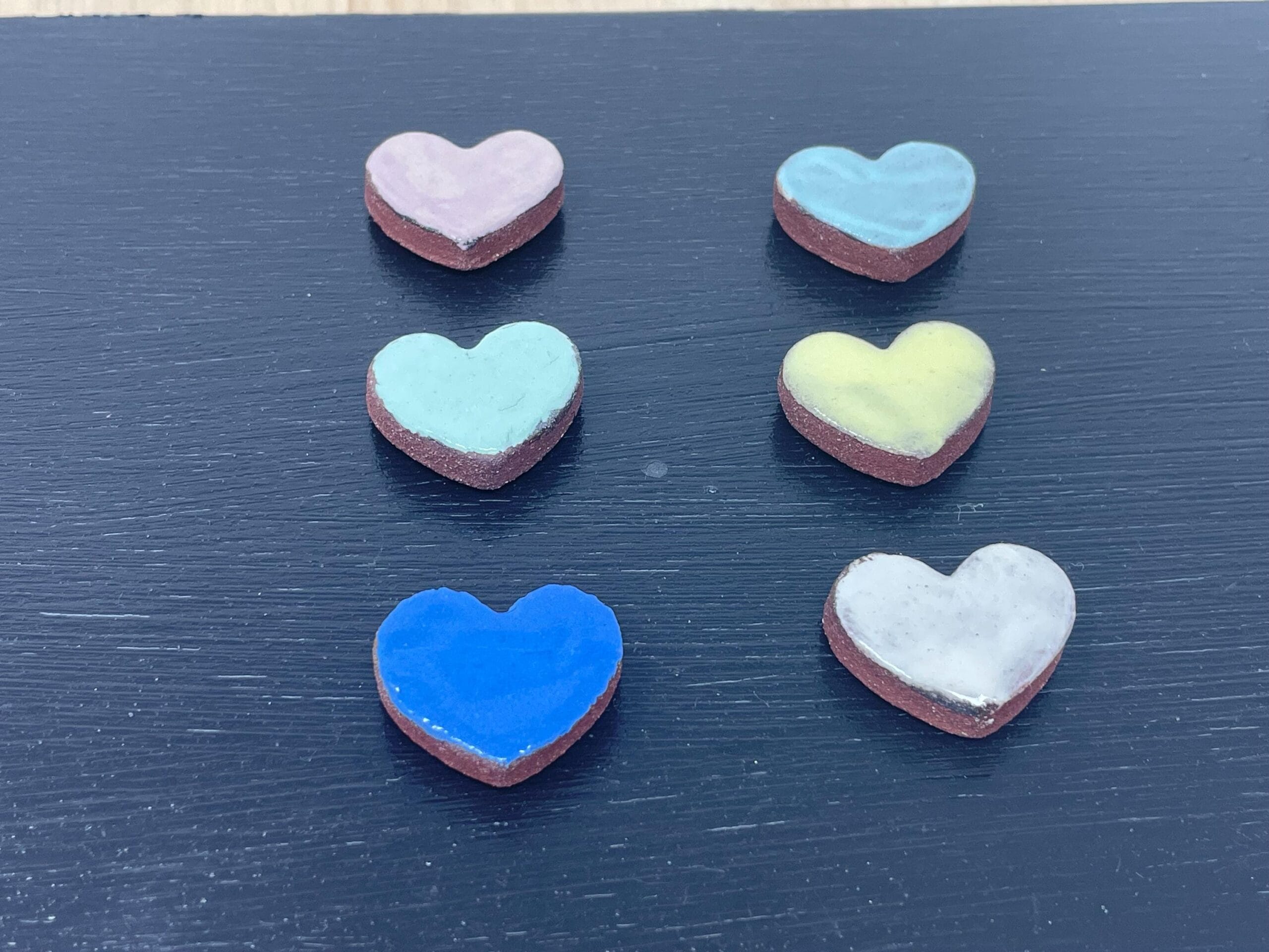 Each heart is handmade from high-quality terracotta clay, carefully cut and painted with underglaze before being fired once to set the colours. A layer of transparent glaze is then applied, and the hearts are fired again at a high temperature to ensure their durability and longevity.