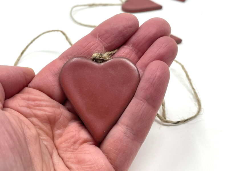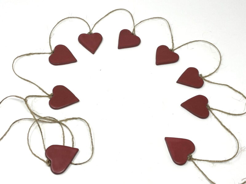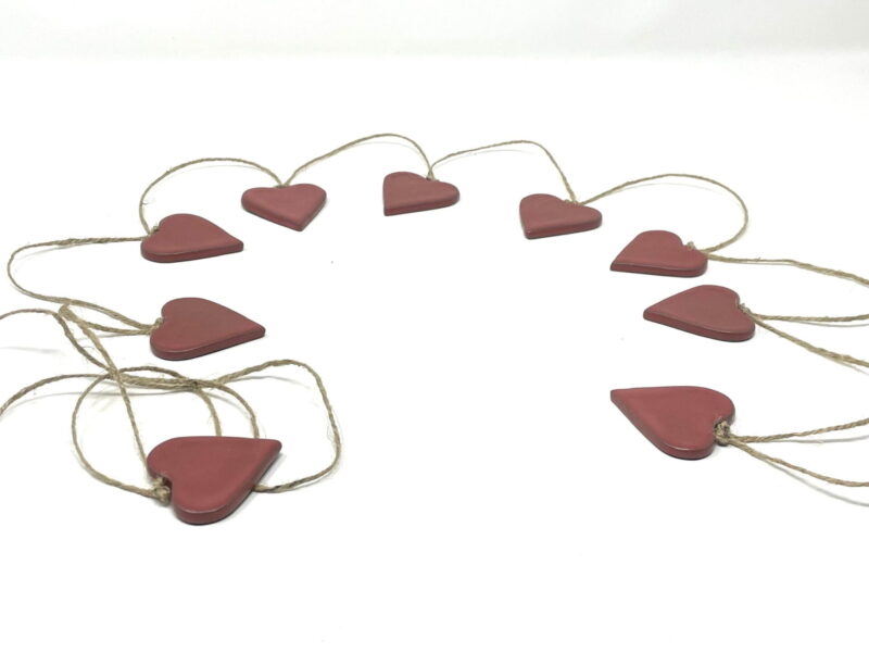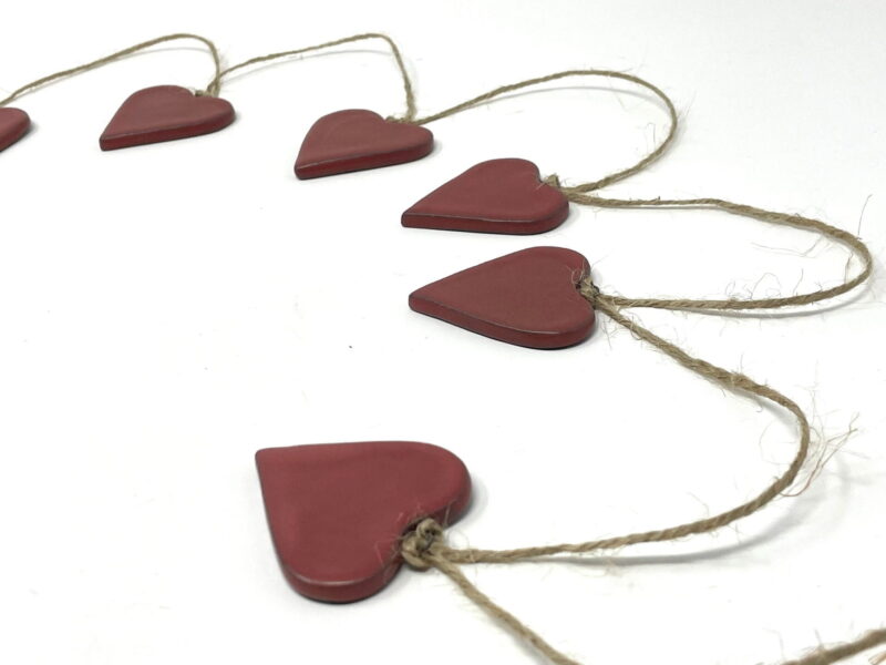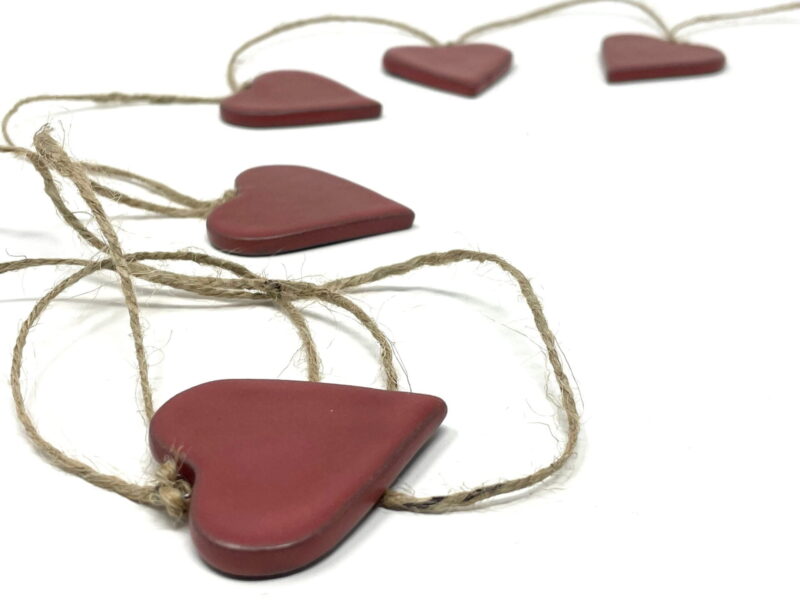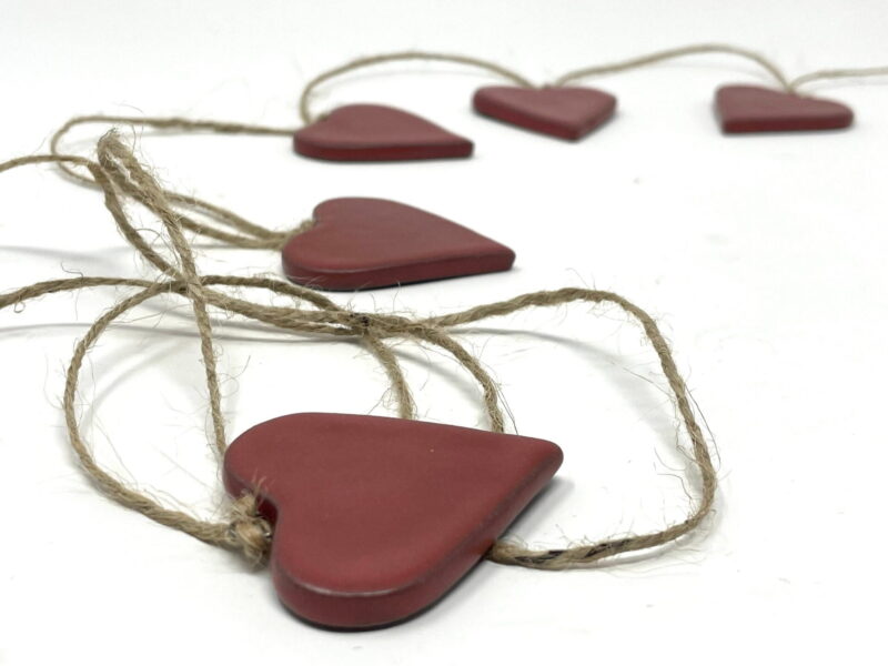 Whether you're looking to create a warm and inviting atmosphere in your home or searching for a unique gift for someone special, the Satin Matte Red Ceramic Heart Garland is sure to impress. Embrace rustic elegance and add a touch of love to your space with this beautiful handmade garland.