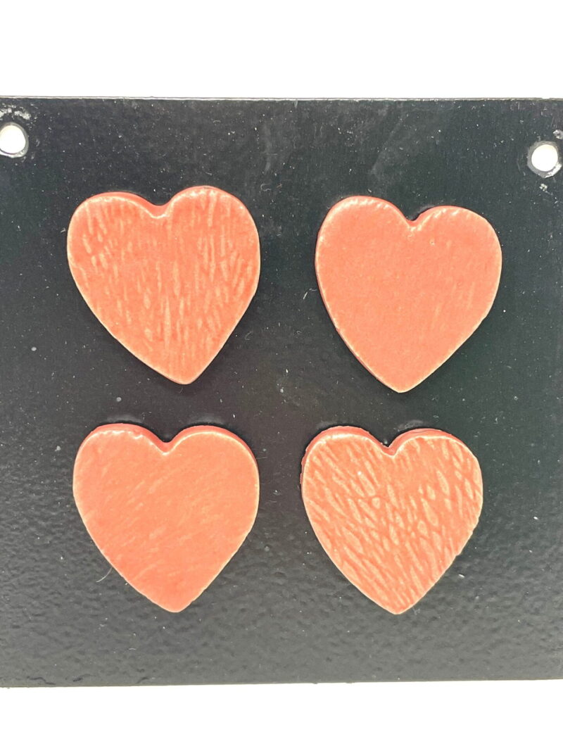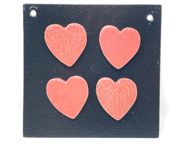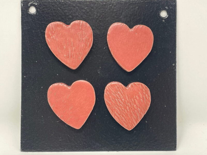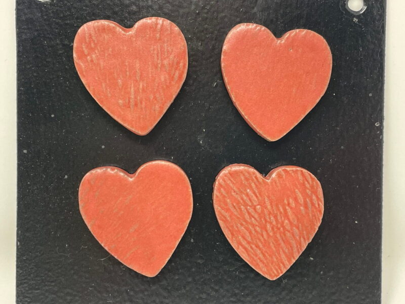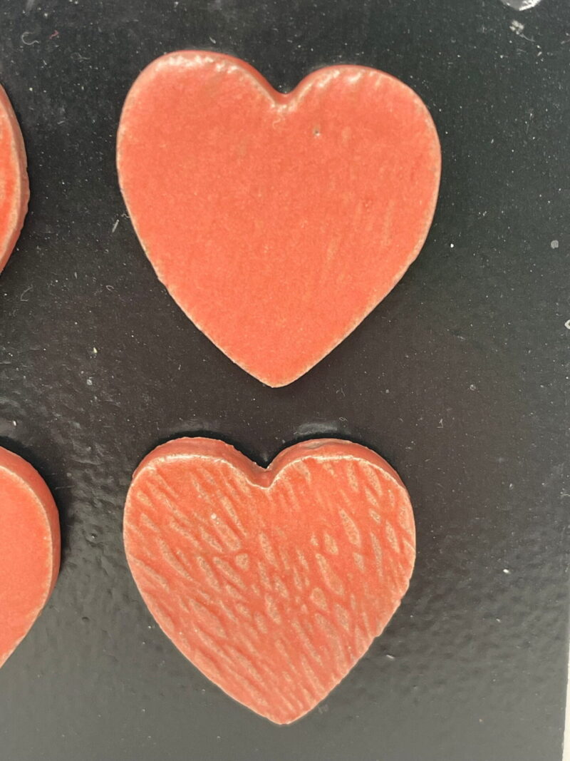 Our talented artisans begin by stretching out the clay and carefully cutting out each heart shape. After drying and firing, the hearts are adorned with a beautiful satin matte red glaze, creating a smooth and elegant finish.