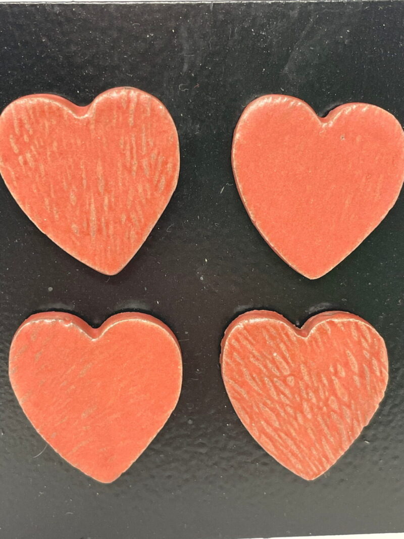 Introducing our Satin Matte Red medium-sized Ceramic love heart magnets set, the perfect Valentine's gift to express your affection. This set of four heart-shaped magnets is handcrafted from grey clay, ensuring each piece is unique and full of character.