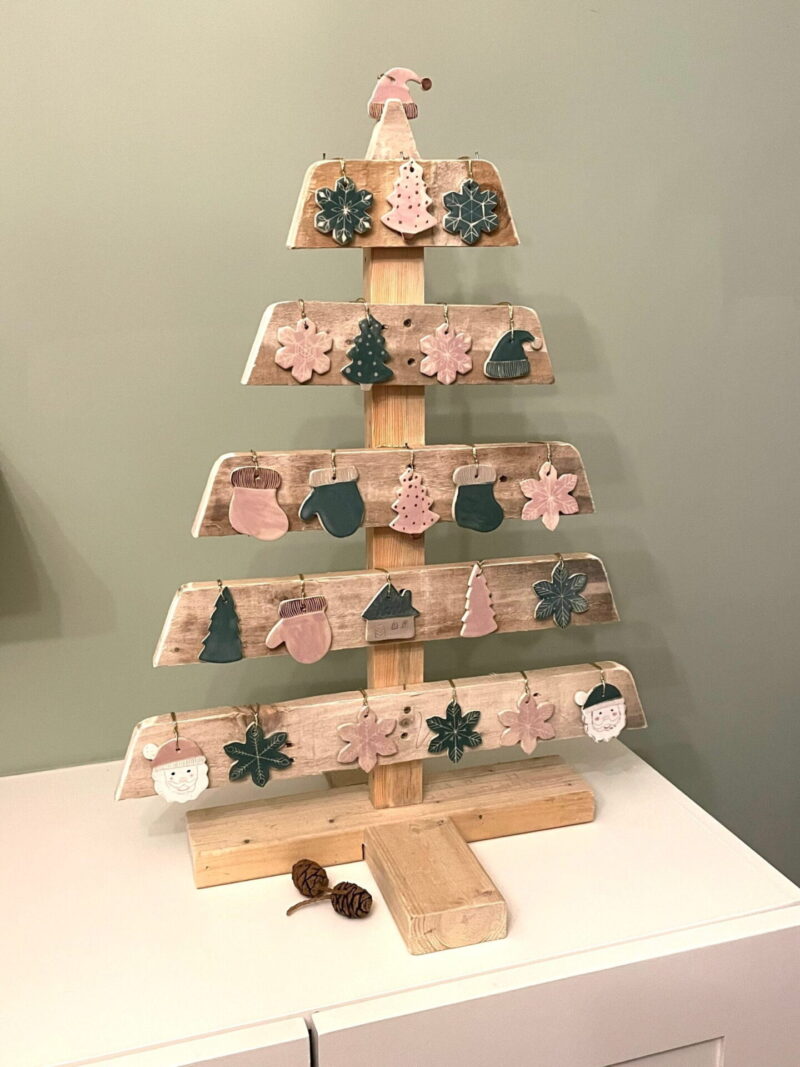 Handmade Pink Ceramic Christmas Ornaments Set – 9 Pieces, Santa, Festive Decorations, Holiday Decor