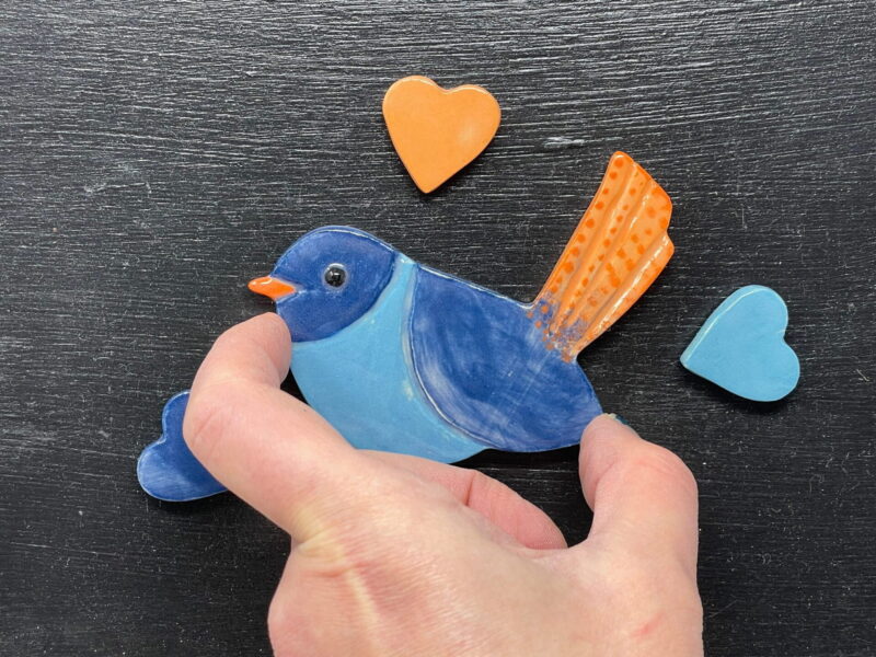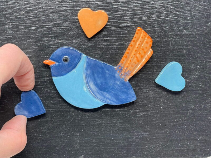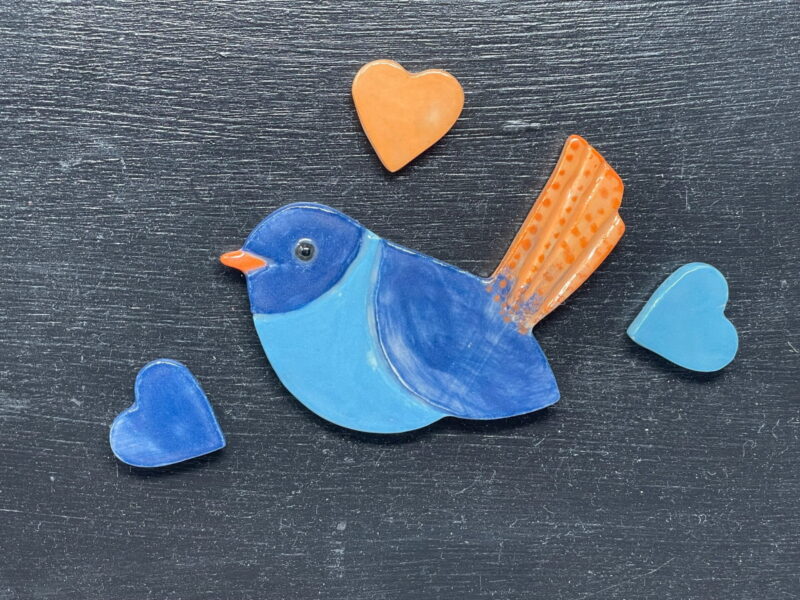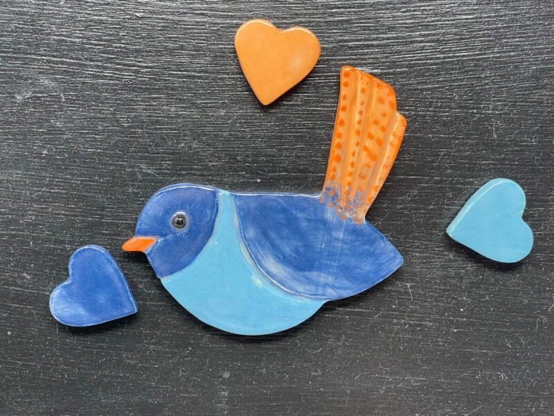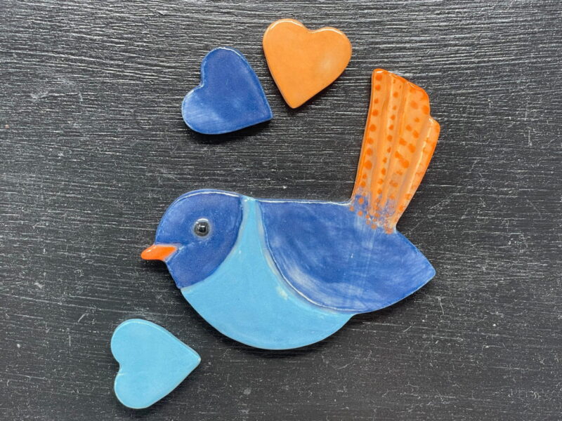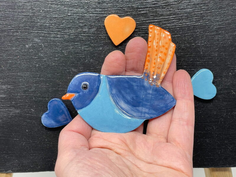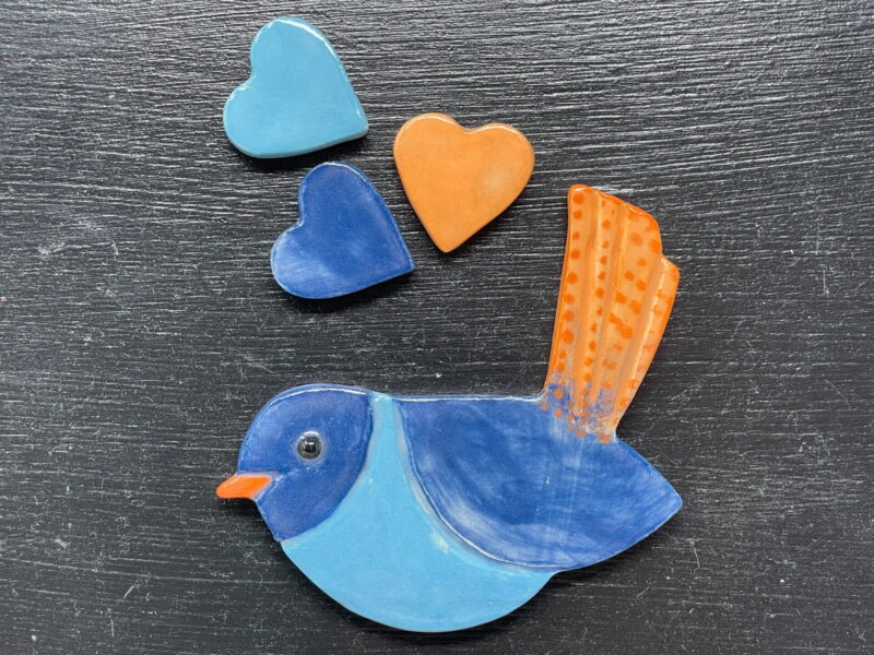 Add a dash of whimsy and elegance to your surroundings with our Set of Nature Inspired Magnets. These handmade ceramic masterpieces featuring three heart-shaped magnets in soothing hues of blue and orange, and a melodious bird are the perfect blend of charm and functionality.