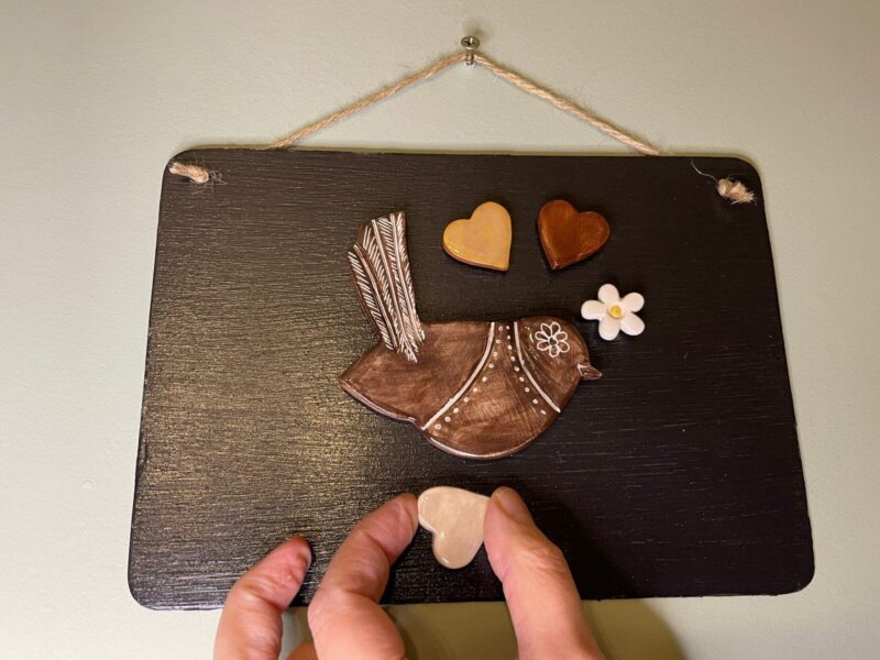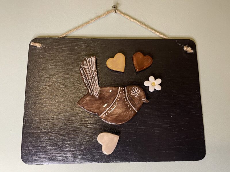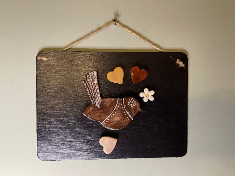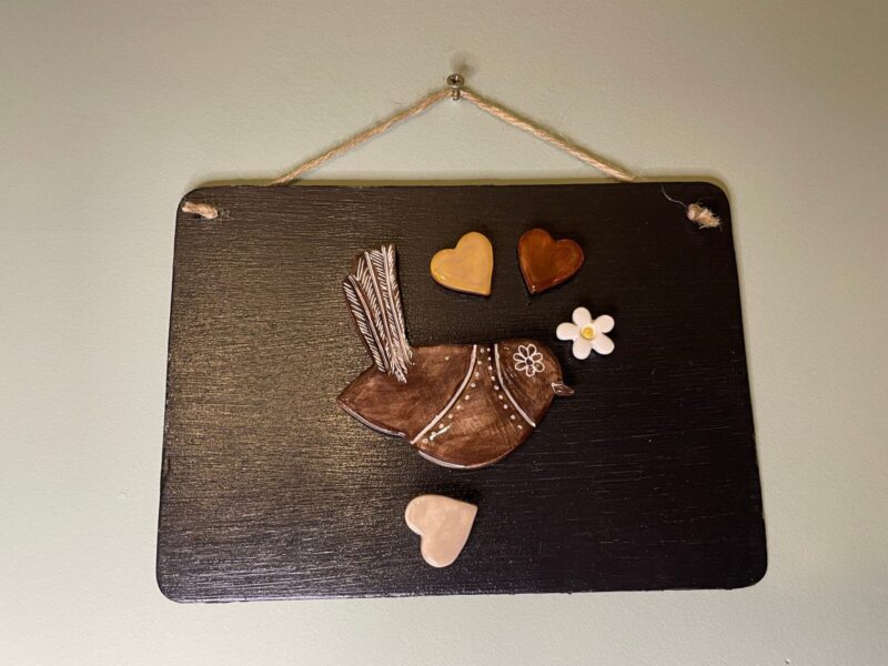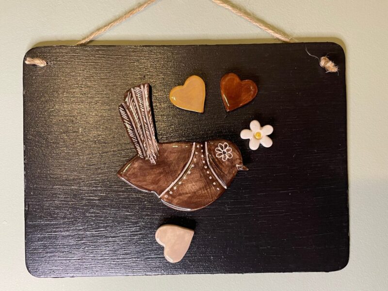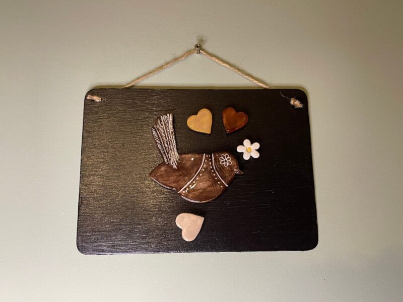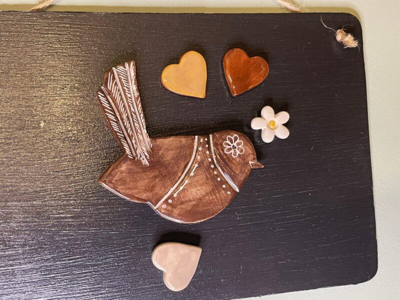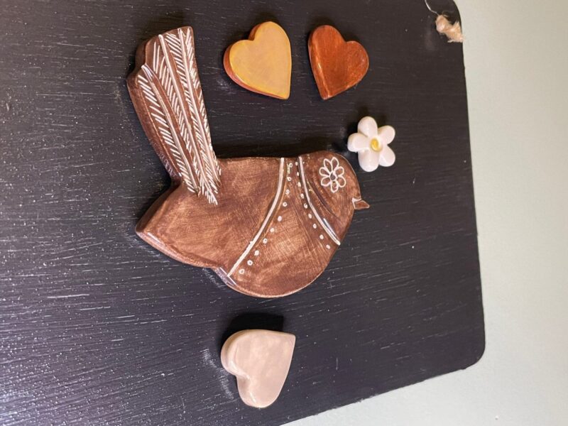 Embrace the warmth of the fall season with our set of 5 autumn-inspired ceramic magnets. This captivating collection, available exclusively on Etsy, features a charming singing bird, delicate white flower, and assorted love hearts, all bathed in different shades of earthy brown to add a touch of rustic elegance to your home decor. Each piece is meticulously handcrafted from white earthenware clay, painted with underglaze paint, and sealed with a transparent glaze for lasting beauty. The charismatic brown bird magnet is particularly striking, crafted with detailed precision and an artistic eye to bring a touch of nature indoors. Meanwhile, the magnetic board, painted black and varnished with durable lacquer, makes an aesthetically pleasing backdrop for these ceramic treasures. Whether displayed on your fridge or used as wall decor during Halloween festivities, these handmade pottery pieces are sure to inject a dose of autumnal charm into any living space. So why wait? Make every day feel like a walk through an enchanting fall forest with these versatile ceramic fridge magnets.