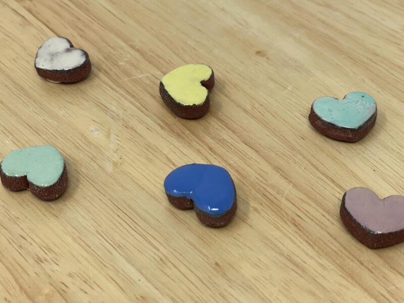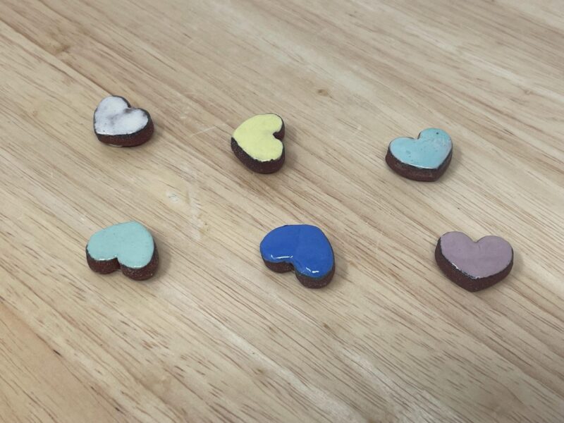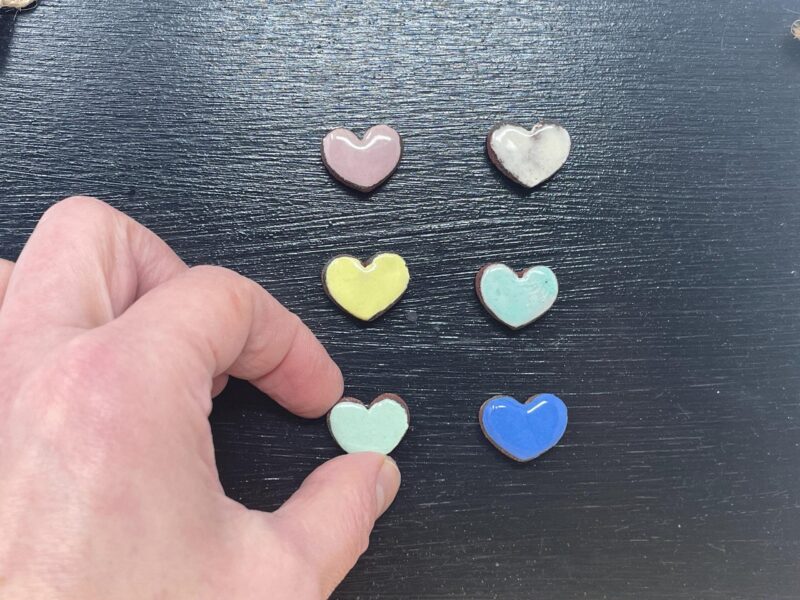 Each heart is handmade from high-quality terracotta clay, carefully cut and painted with underglaze before being fired once to set the colours. A layer of transparent glaze is then applied, and the hearts are fired again at a high temperature to ensure their durability and longevity.