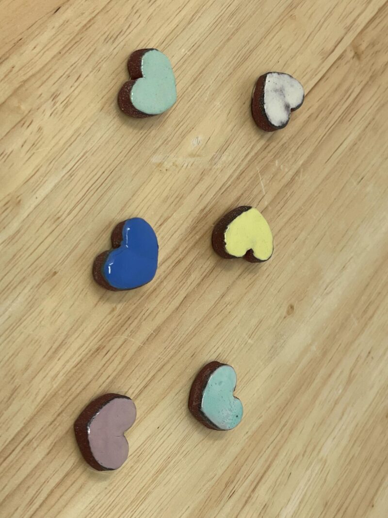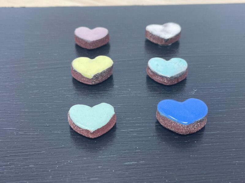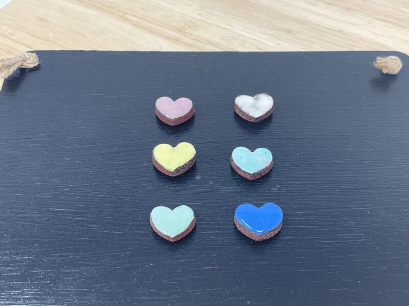 Set of 6 pastel coloured mini Ceramic love heart magnets / Valentine’s heart fridge magnets/ set of 6 magnets