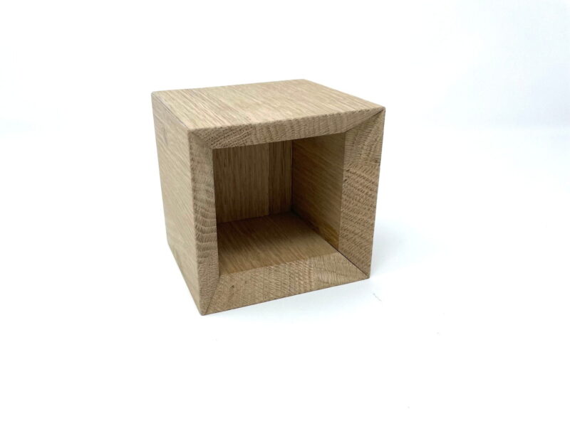Dimensions: 9.5 cm tall, and 10.5 cm wide and 10.5 cm deep, looks like a cube