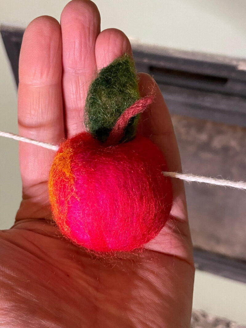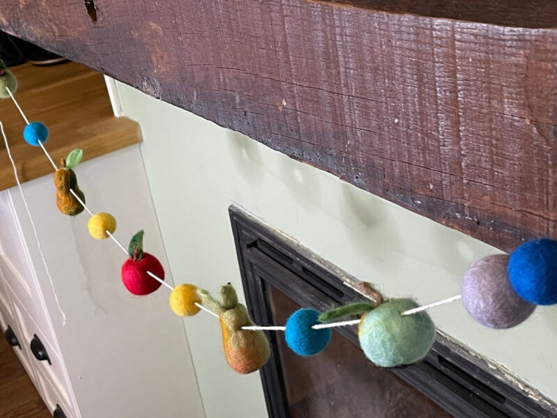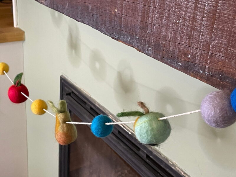 Made from natural wool, felt and cotton string, this garland is composed of 2 mini needle felted apples, 1 larger one, 2 pears and 8 felt balls. With an approximate length of 130 cm (without the hanging thread at the ends), this handmade garland is sure to bring a charming, rustic touch to your home and will make a great gift for any occasion, especially Mother’s Day!